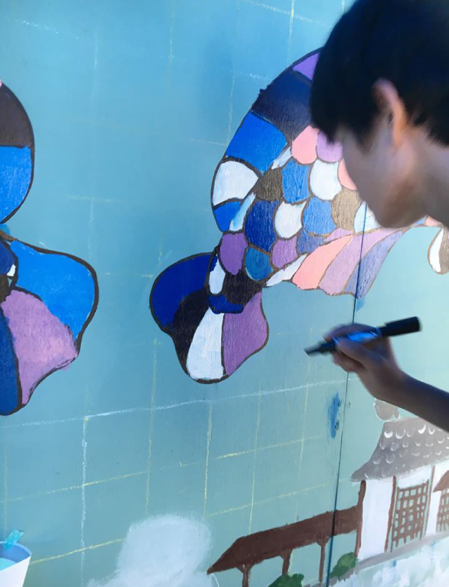 6年生以上の生徒で壁画制作